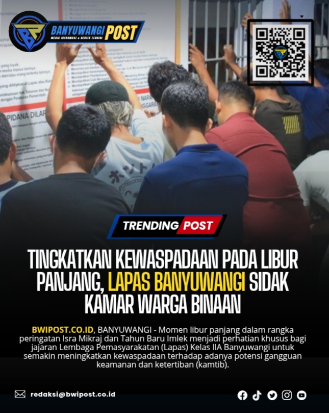 BWIPOST.CO.ID, BANYUWANGI – Lembaga Pemasyarakatan (Lapas) Kelas IIA Banyuwangi terus berupaya mewujudkan kondisi keamanan yang maksimal bagi seluruh warga binaan…