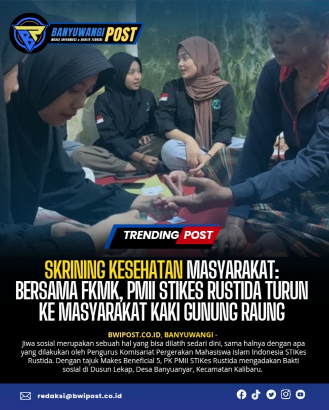 Skrining Kesehatan Masyarakat: Bersama FKMK, PMII STIKes Rustida Turun Ke Masyarakat Kaki Gunung Raung