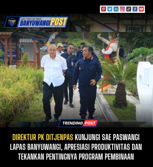 BANYUWANGI – Pada hari Rabu tanggal 11 Maret, kawasan lahan yang terletak di Kelurahan Pakis menjadi tempat kunjungan kerja Direktur Pembimbingan Kemasyarakatan (PK) Direktorat Jenderal Pemasyarakatan, Ceno Hersusetiokartiko. Tempat yang dikunjunginya adalah Sarana Asimilasi dan Edukasi (SAE) Paswangi, milik Lapas Kelas IIA Banyuwangi, dengan pemandangan luas lahan yang dikelola secara terstruktur untuk berbagai aktivitas produktif.