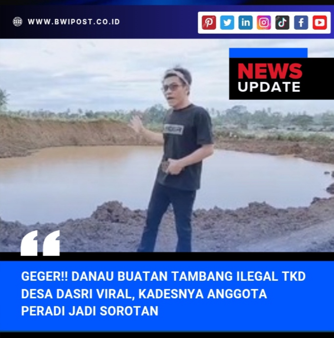 Banyuwangi, 1 Mei 2026 – Jagat media sosial Banyuwangi diguncang oleh viralnya sebuah unggahan video TikTok yang merekam lokasi kegiatan tambang ilegal di Desa Dasri, Kecamatan Tegalsari. Video yang menyebar dengan cepat tersebut menampikan pemandangan yang mengejutkan: sebuah kubangan menganga lebar yang dipenuhi air hingga menyerupai danau buatan yang luas dan dalam. Lebih mengejutkan lagi, dalam narasinya disebutkan bahwa lokasi tersebut merupakan tanah aset desa atau Tanah Kas Desa (TKD) yang berdampingan langsung dengan kawasan Lahan Pangan Produktif Berkelanjutan (LP2B).